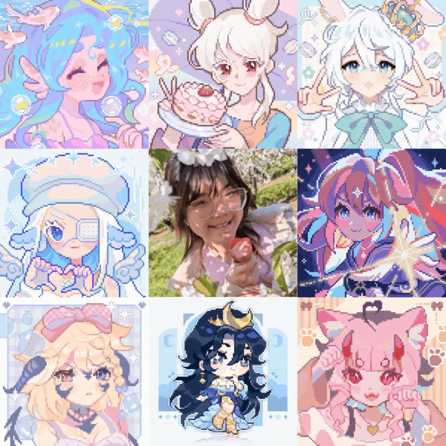 My name is Millie. I'm a pixel artist who loves creating cute and cozy anime pixel art. My art is inspired by the cottagecore aesthetic, my favourite cozy games, and Japanese pop culture.For Artist Alley, I love bringing to the table classic products such as prints, keychains, stickers as well as practical products like photocard holders, tote bags and apparel.